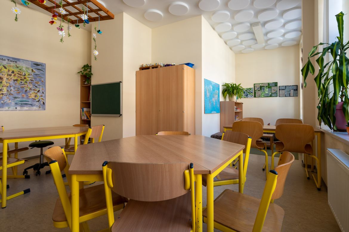 Im Grundschulgebäude stehen den Kindern der 4 Klasse 2 Räume für die Betreuung am Nachmittag zur Verfügung. Die Klassenzimmer in Doppelnutzung sind großzügig gestaltet, und für die Kinder gibt es ausreichend Platz für Spielmöglichkeiten und kreatives Gestalten.